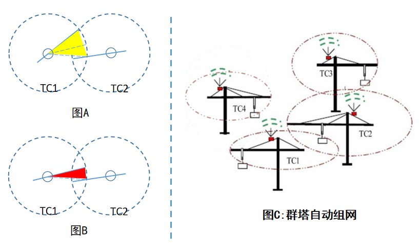 群塔自動識別、自動組網(wǎng)實時信息互聯(lián),防止碰撞事故。